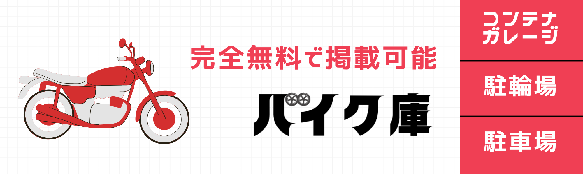 バイク庫では、月極のバイクコンテナ(ガレージ)・バイク駐車場・バイク駐輪場の掲載を募集しております。日本全国バイクが停められる場所であれば掲載が可能です。